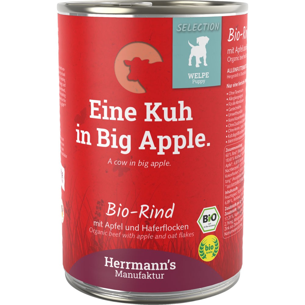 Welpe: Bio Rind mit Apfel Karotte Haferflocken 400g Hund Nassfutter Herrmann